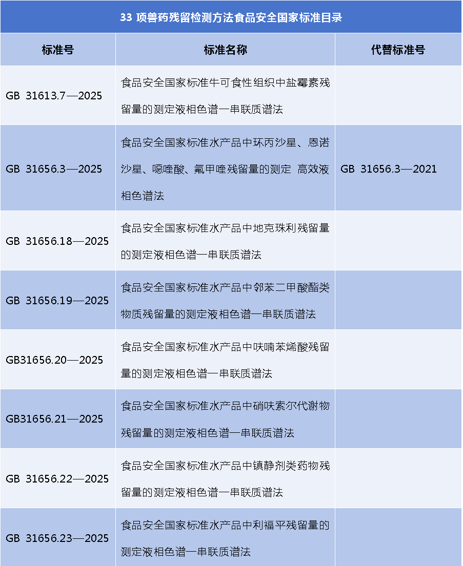 - 注意啦!33 项兽药残留检测方法食品安全国家标准正式实施